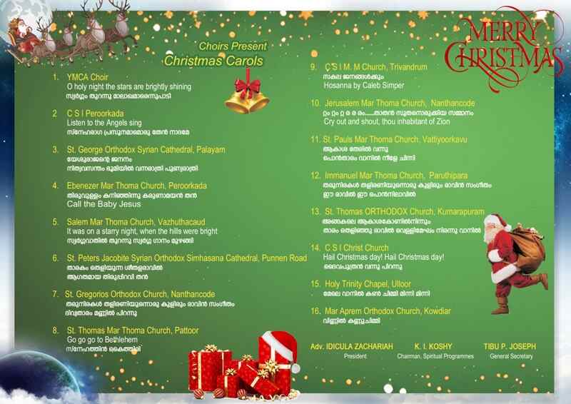 The capital city’s Christmas celebration were kickstarted by the Xmas Carol night conducted by YMCA Trivandrum at University Senate Hall on December 01, 2024 Bishop Dr. Isaac Mor Philexinox of the Marthoma Syrian Church, Trivandrum- Kottarakkara Diocese inaugurated and blessed the occasion with a Christmas message. The celebratory night, which started with a song sung by the YMCA Choir was made into a melodious one by 16 choirs from various churches in the city. YMCA Choir master Mr. Cherian Oommen was felicitated during the occasion.